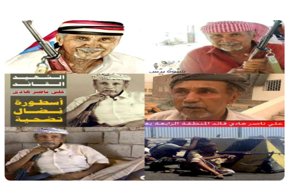 وفي، خضم ضراوة القتال تقدم صفوف الشباب المقاومين كهل في العقد السابع من عمره يحثهم على الثبات ويقاوم العدو بسلاحه الشخصي غير مكترث لرتبته العسكرية أو منصبه كل همه الدفاع عن مدينته وأهله، ذلك هو اللواء علي ناصر هادي قائد المنطقة العسكرية الرابعة وأحد المدافعين عن عدن من غزو مليشيات الحوثي وقوات صالح القادمة من أقصى الشمال.