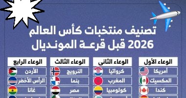 قرعة كأس العالم 2026.. تصنيف منتخبات مونديال أمريكا الشمالية (إنفوجراف)