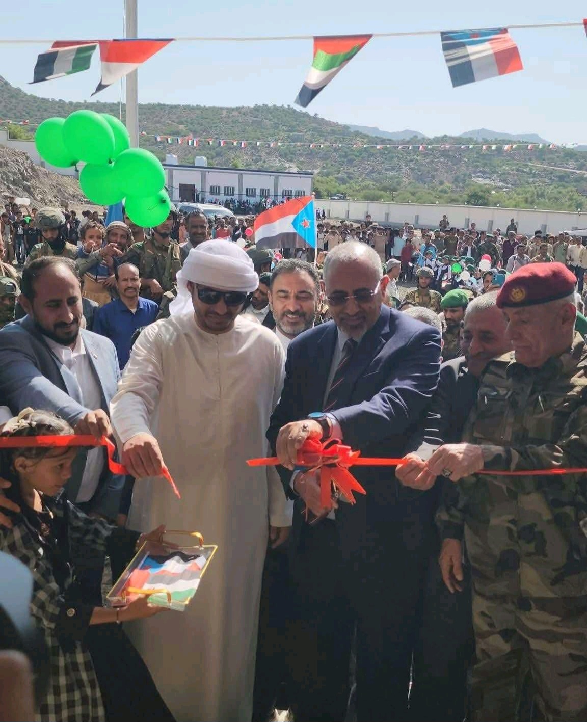 الرئيس الزُبيدي يزور مديرية الشعيب ويفتتح مجمّع الشيخ محمد بن زايد التعليمي النموذجي بمنطقة القزعة