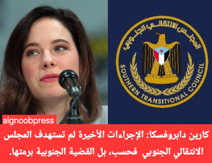 كارين دابروفسكا: الإجراءات الأخيرة لم تستهدف المجلس الانتقالي الجنوبي فحسب، بل القضية الجنوبية برمتها.