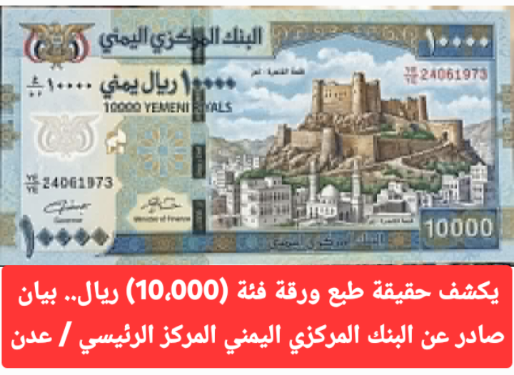 يكشف حقيقة طبع ورقة فئة (10،000) ريال.. بيان صادر عن البنك المركزي اليمني المركز الرئيسي / عدن