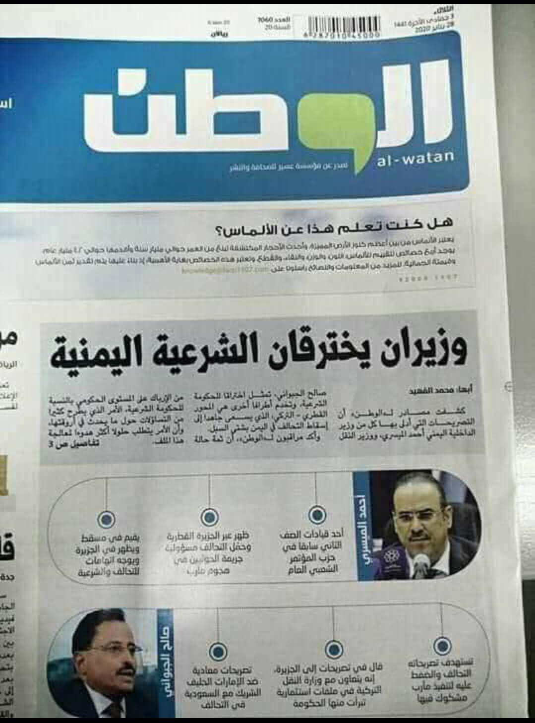 صحيفة الوطن السعودية تقول إن الميسري والجبواني يخترقان ما يسمى الشرعية اليمنية