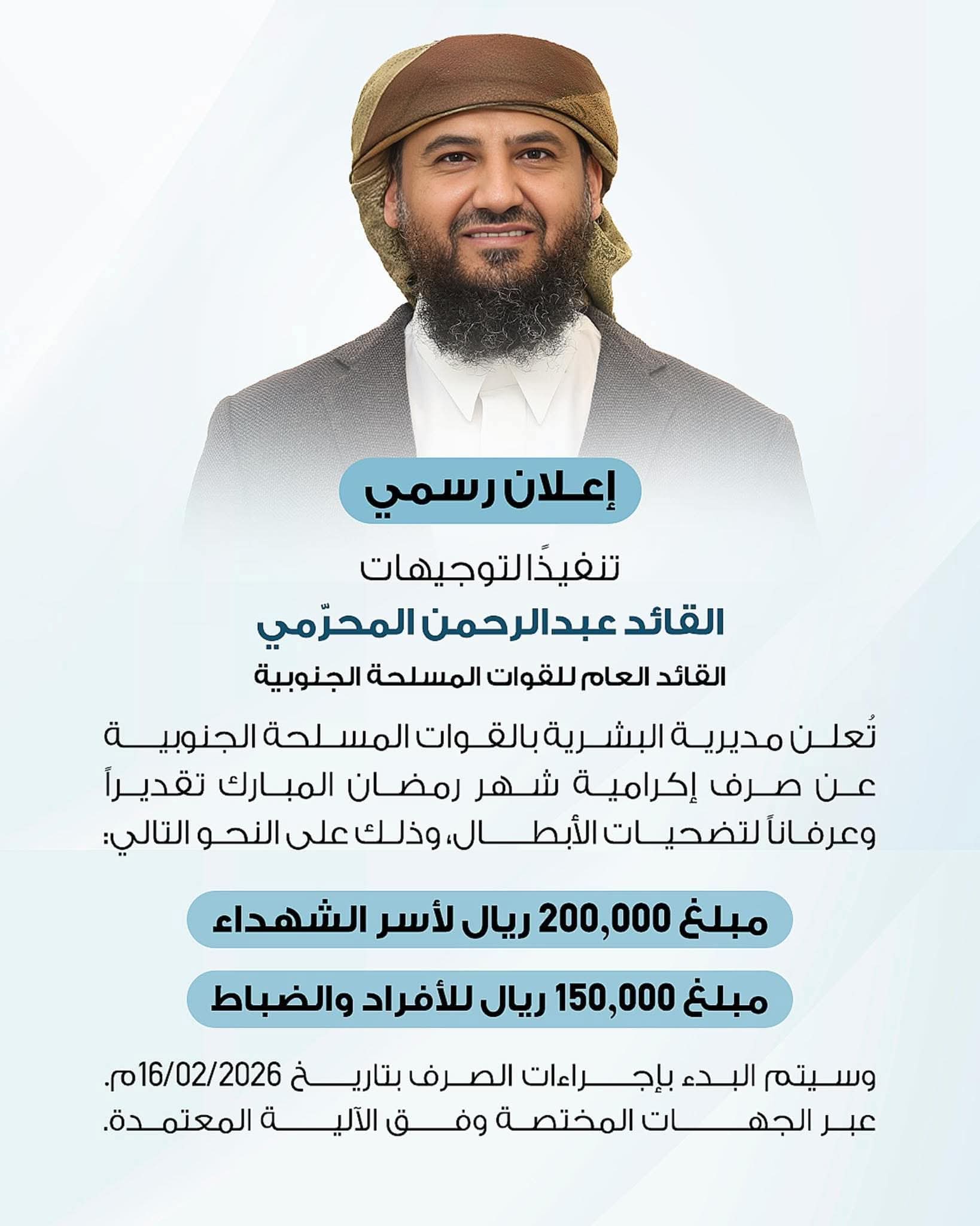 ناشط جنوبي يوجه رسالة هامة للقائد الجنوبي محمود الصبيحي عضو المجلس الرئاسي