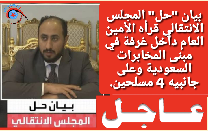 بيان "حل" المجلس الانتقالي قرأه الأمين العام داخل غرفة في مبنى المخابرات السعودية وعلى جانبيه 4 مسلحين.