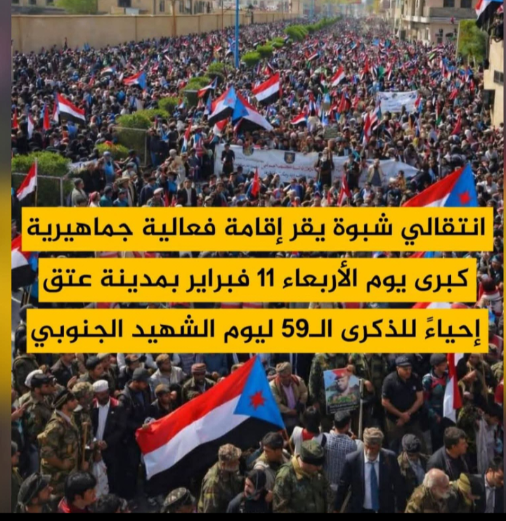 انتقالي شبوة يقر إقامة فعالية جماهيرية كبرى بمدينة عتق الأربعاء القادم إحياءً ليوم الشهيد الجنوبي