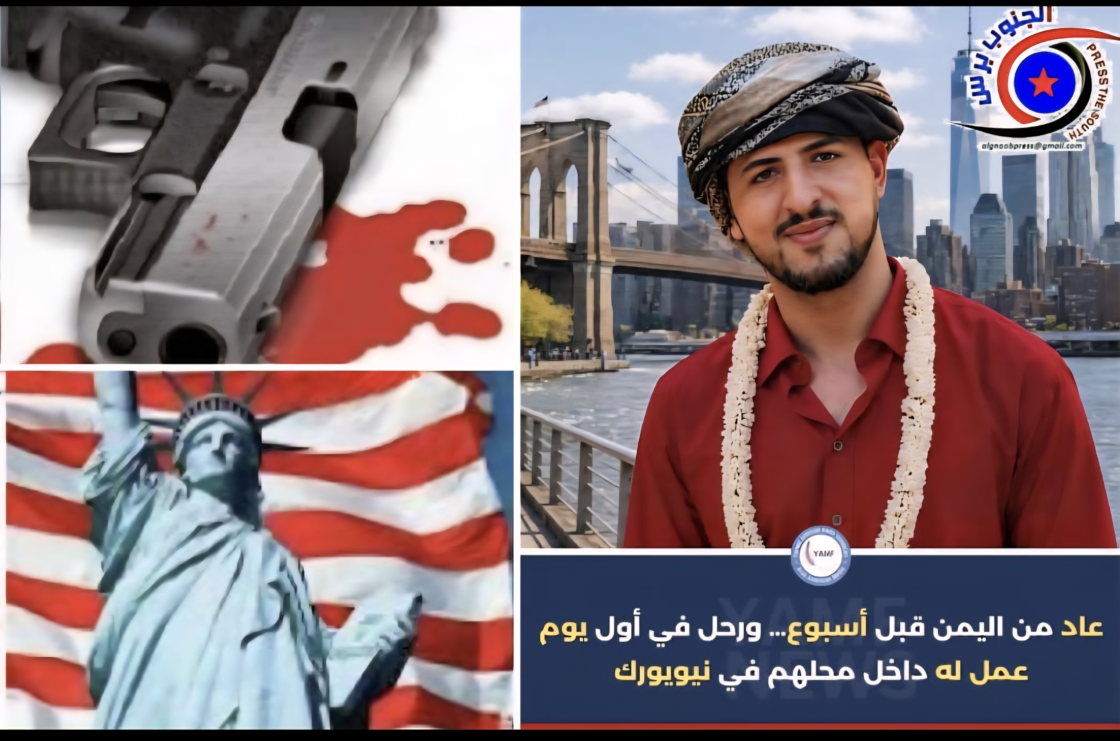 عاد إلى نيويورك قادمًا من اليمن قبل أسبوع، بعد فترة قضاها بين أهله وناسه… عاد بقلبٍ مليء بالشوق، وبأملٍ بسيط: أن يواصل عمله، ويكمل طريقه في هذه الحياة.